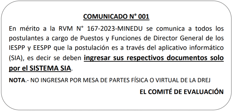 | 033 | PROCESO DE REASIGNACIÓN POR MOTIVOS DE SALUD EN LOS IEST/EEST DE LA JURISDICCIÓN DE LA DRE. JUNIN | 01/09/2025 ![]() |