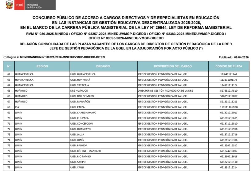 Un total de 14,521 docentes de la región forman parte de la Carrera Pública Magisterial y podrán acceder a mejores remuneraciones y nuevas oportunidades profesionales. Un total de 14,521 docentes nombrados de la región Junín podrán participar en el Concurso de Ascenso Docente 2026, convocado por el Ministerio de Educación (Minedu), lo que representa una…