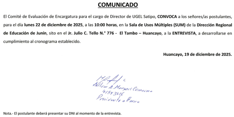 Junín volvió a colocarse en lo más alto del escenario educativo nacional. La región fue una de las grandes protagonistas del Concurso de Buenas Prácticas de Gestión Educativa 2025, “Gestión que transforma la escuela”, organizado por el Ministerio de Educación (Minedu), al obtener reconocimientos en cuatro categorías clave, consolidando su liderazgo en gestión pública educativa […]