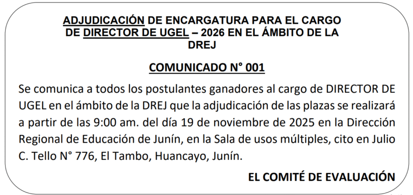 La Dirección Regional de Educación Junín (DREJ) anuncio a las delegaciones escolares que, luego de una rigurosa y participativa etapa regional, han sido seleccionadas para representar a nuestra región en la etapa nacional de los Juegos Florales Escolares Nacionales (JFEN) 2025, los mismos que harán sus presentaciones tanto presencial y no presencial (virtual) conforme a […]